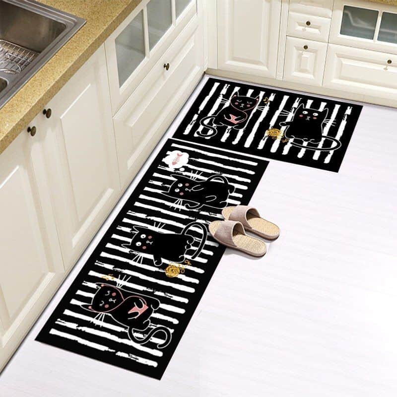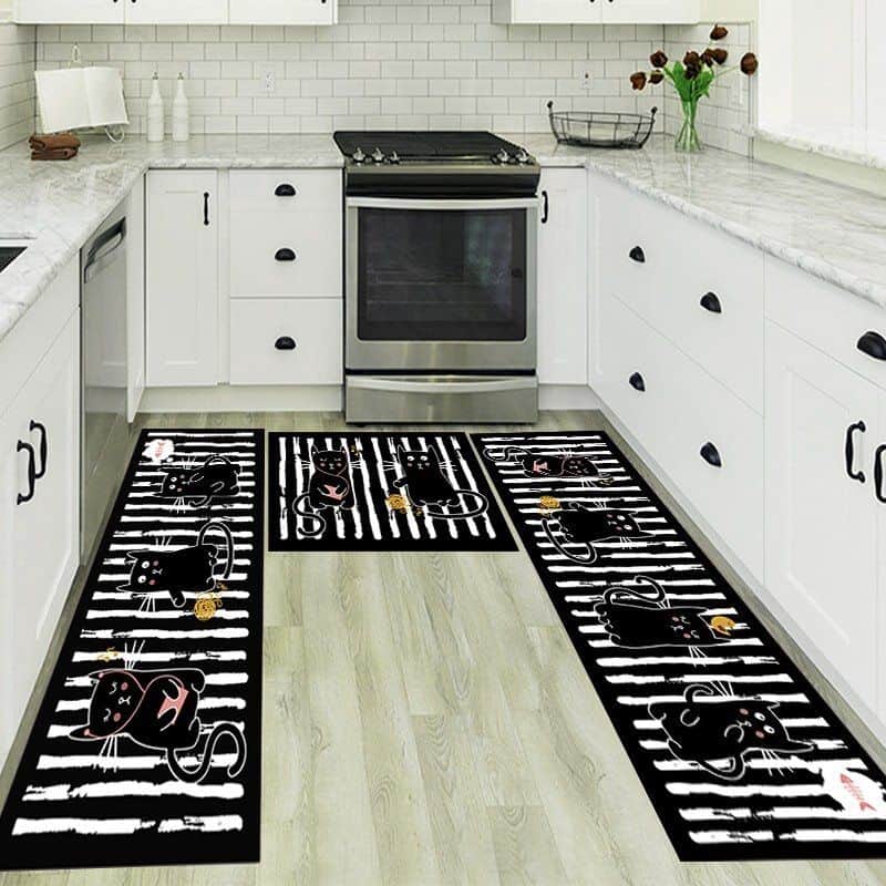 סט 3 שטיחי מטבח חתולים שחור לבן