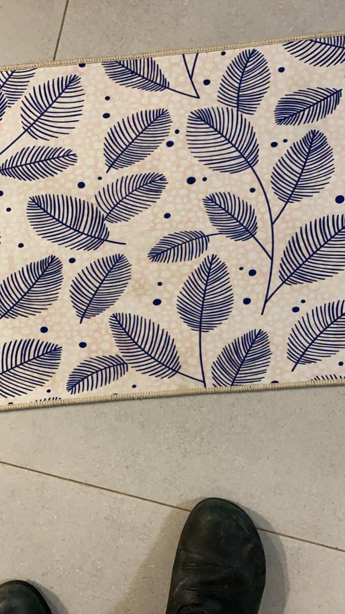 סט זוג שטיחי מטבח - עלים הכחול נקודות בז'