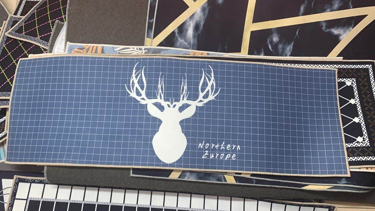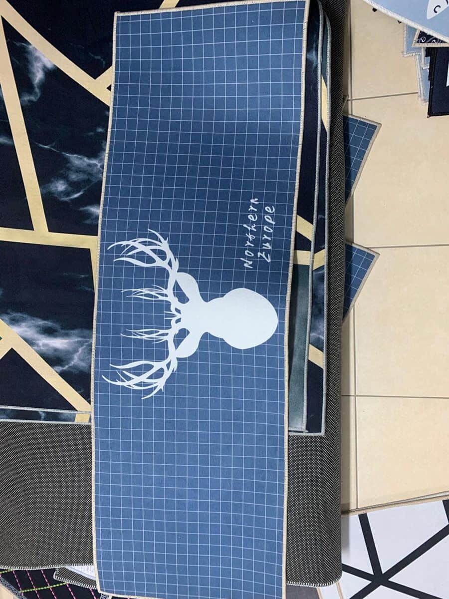 סט זוג שטיחי מטבח - צבי לבן על כחול