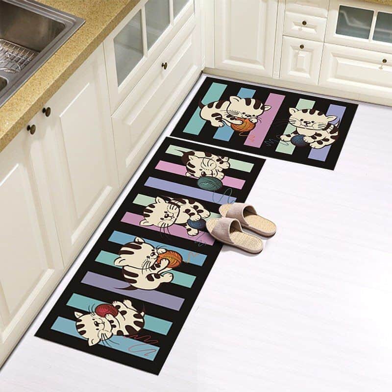 סט זוג שטיחי מטבח - חתולים משחקים בחוט