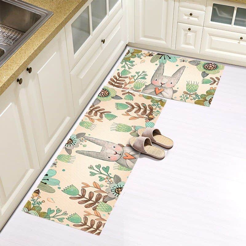 סט זוג שטיחי מטבח - ארנב ופרחים