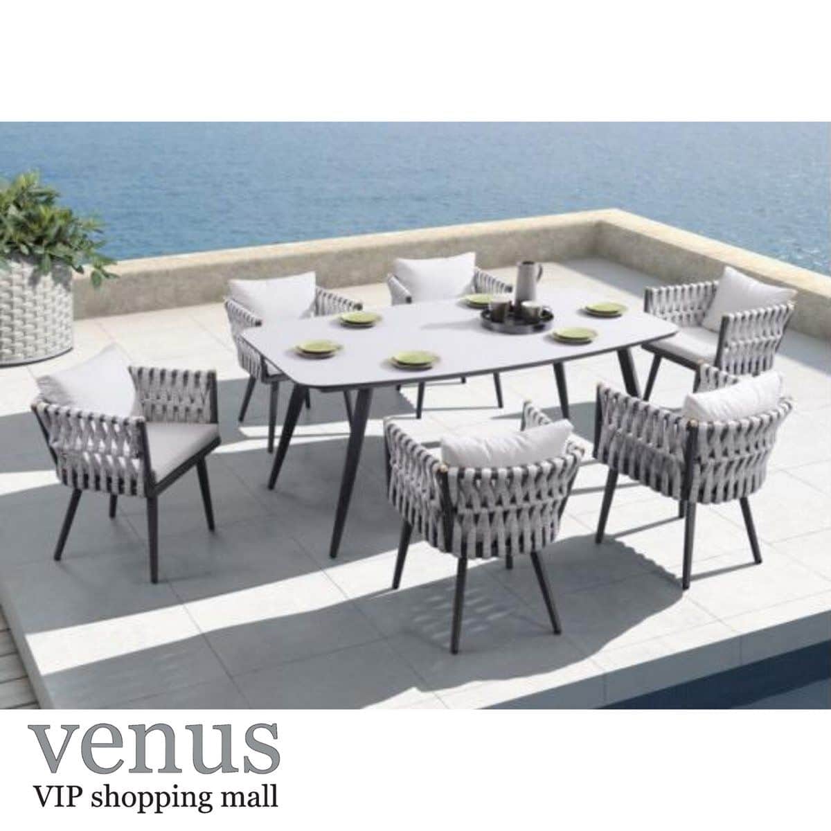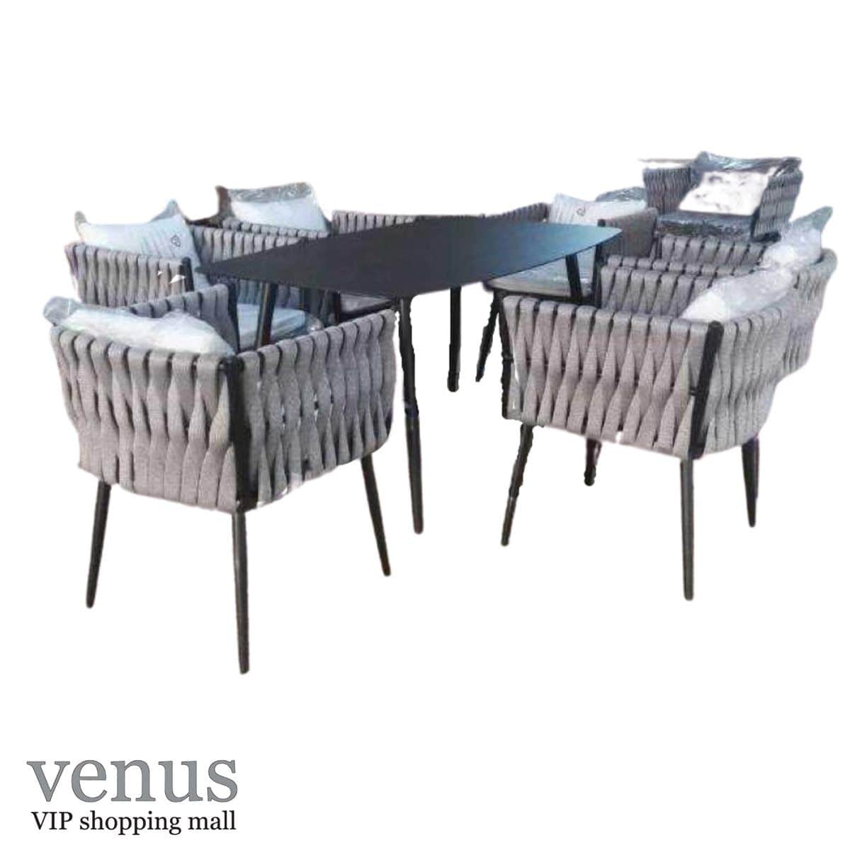 שולחן אוכל ו6 כורסאות אפור בהיר