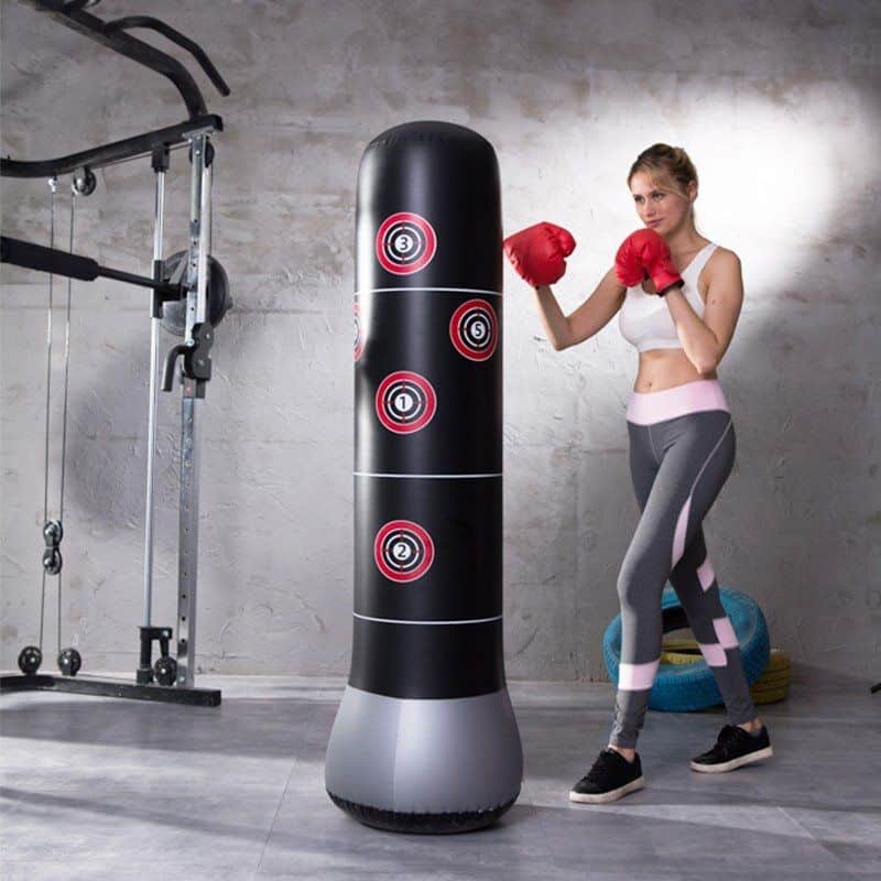 תיק האיגרוף יקפץ לאחור מיד לא משנה כמה חזק תאגרף בו בו וכך זה יעזור לך להתאמן בטאקוונדו, באגרוף, בעיטת זריקה ובקראטה כדי לשפר את המצב רוח שלך.
