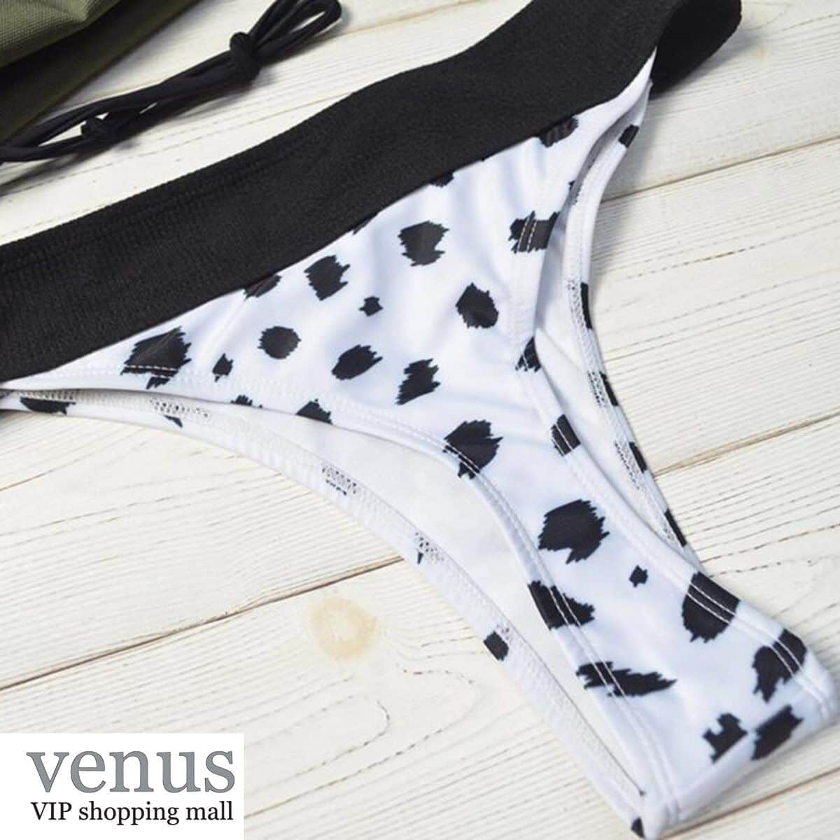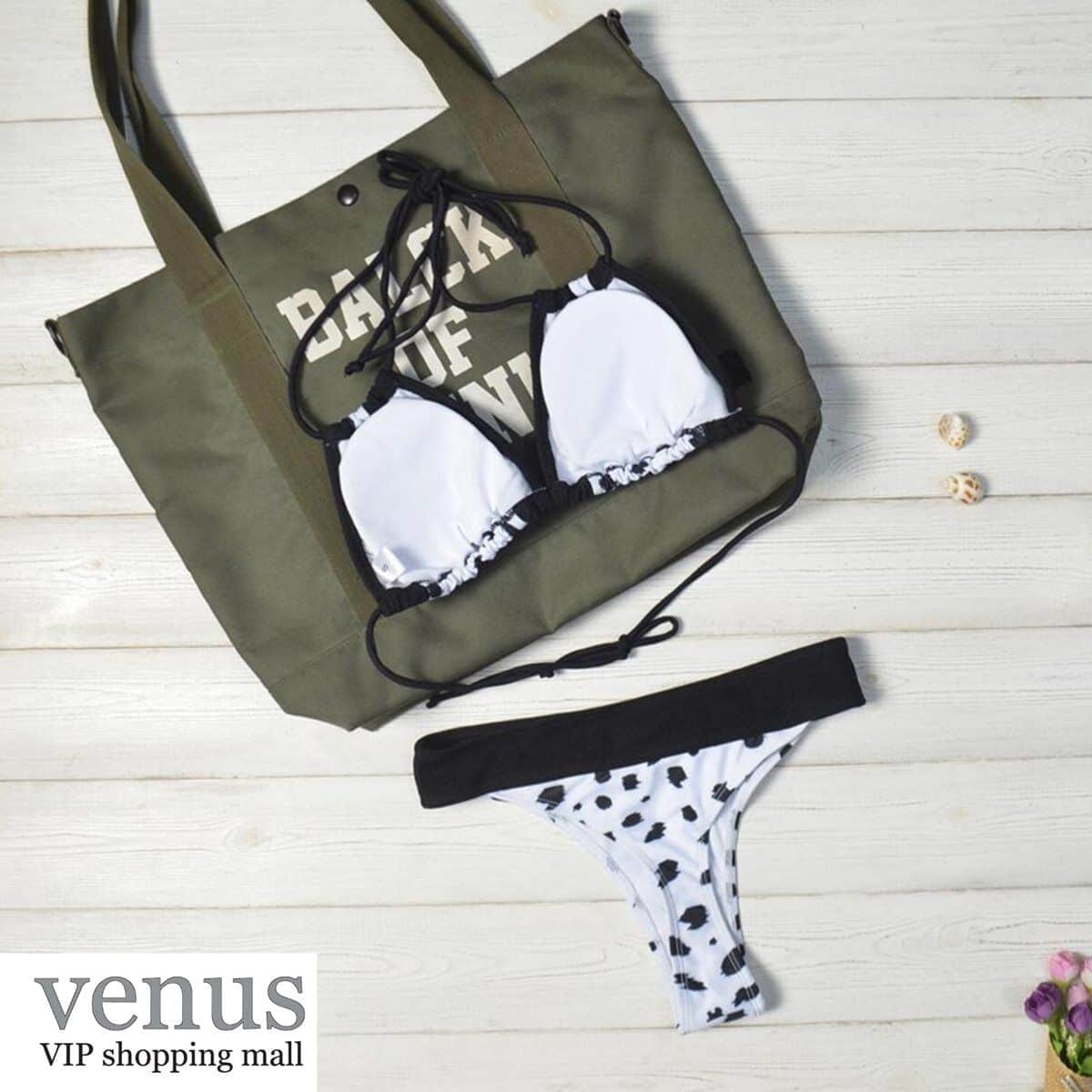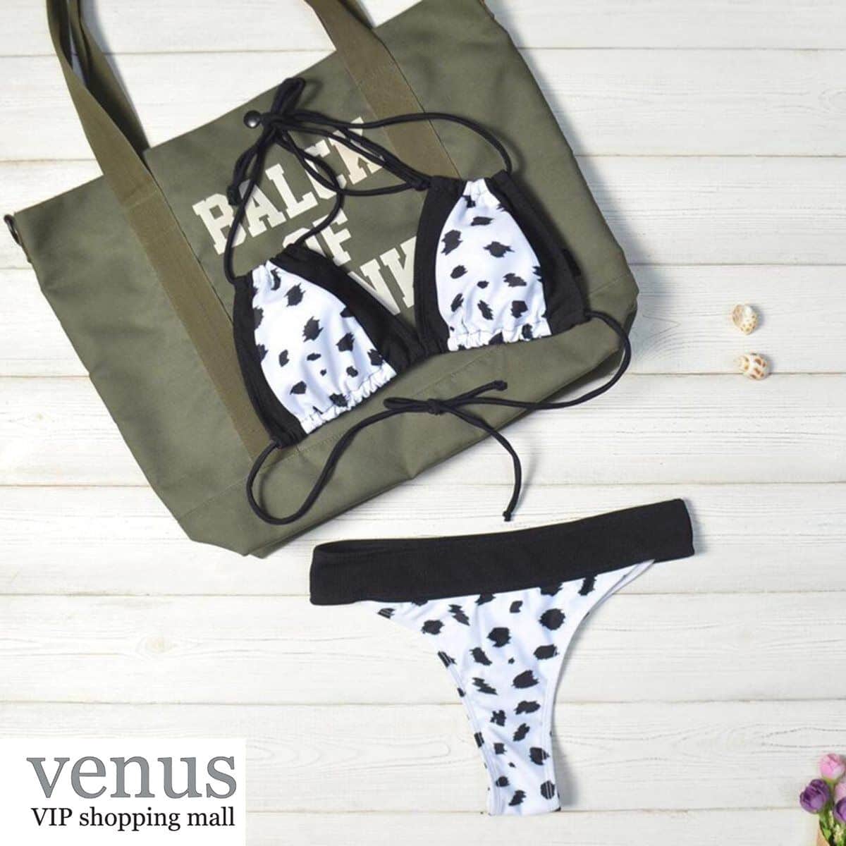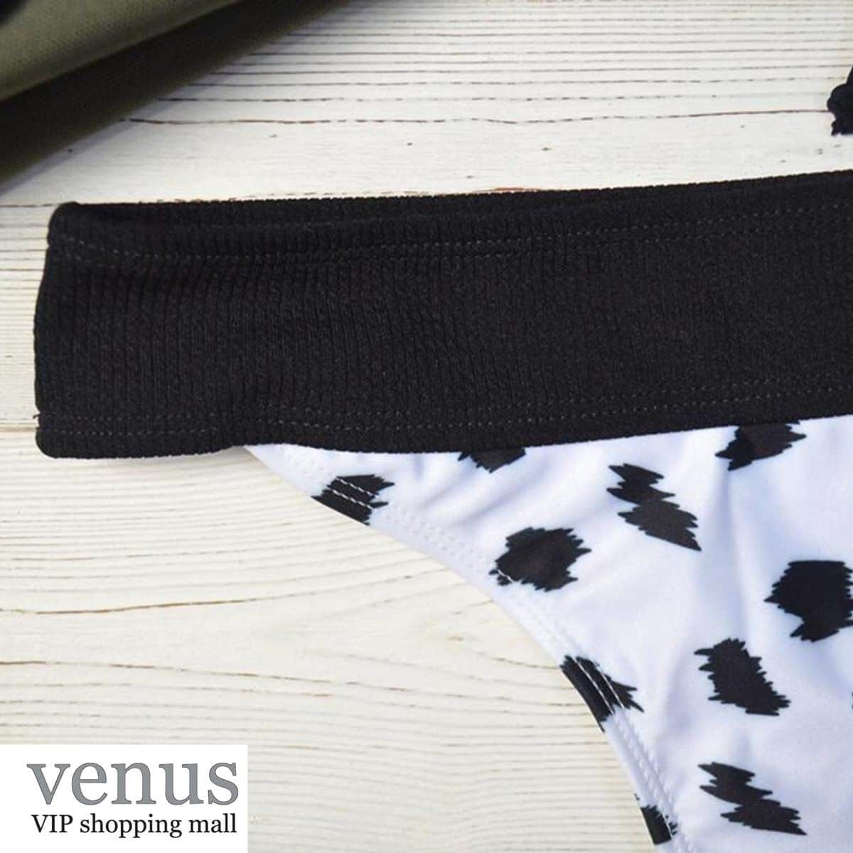 9047 - בגד ים בקיני מנוקד שחור לבן פס בולט
