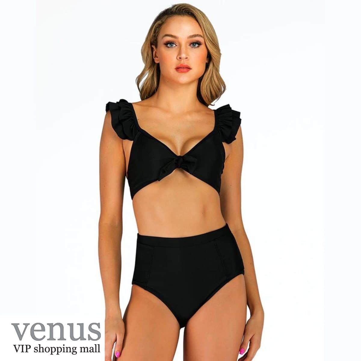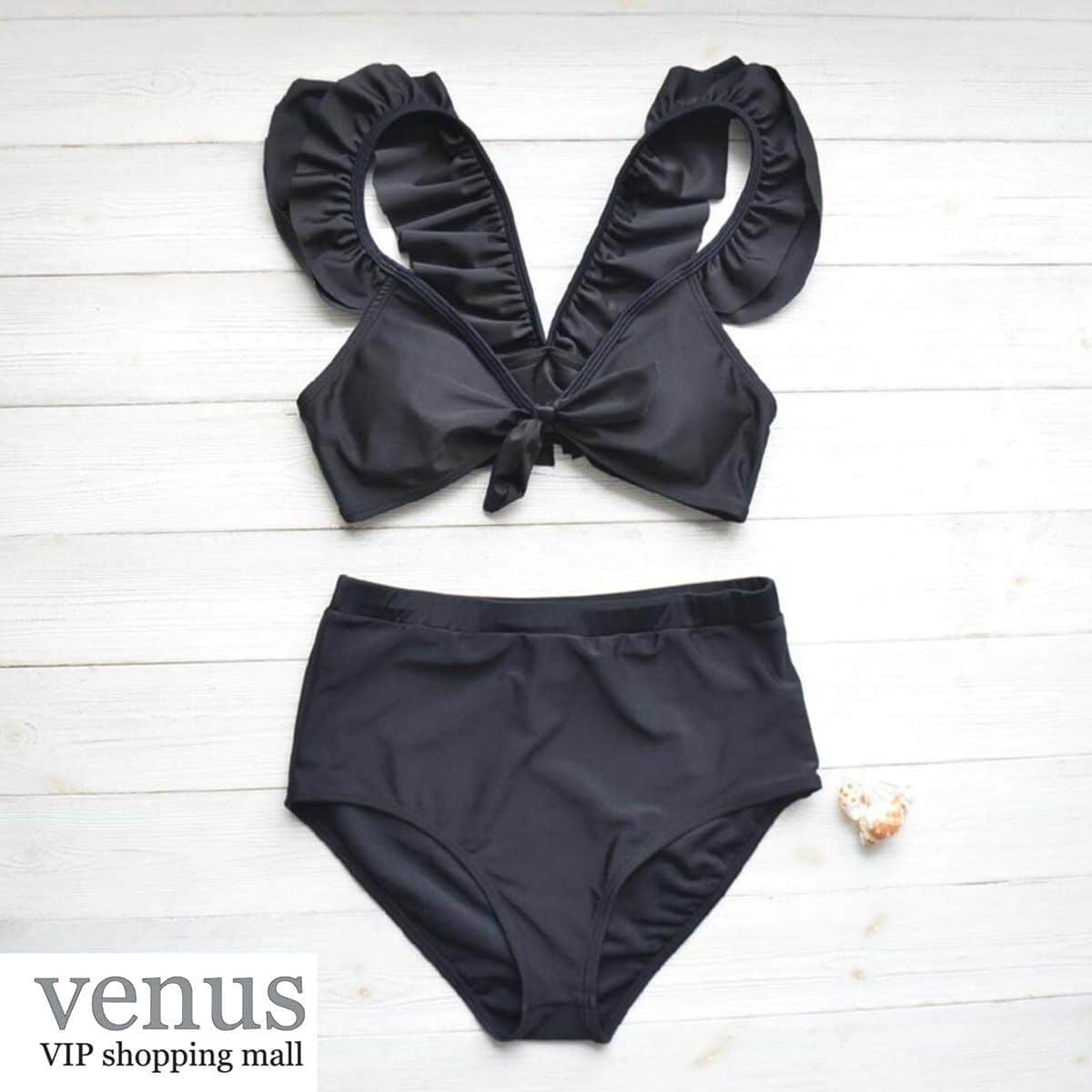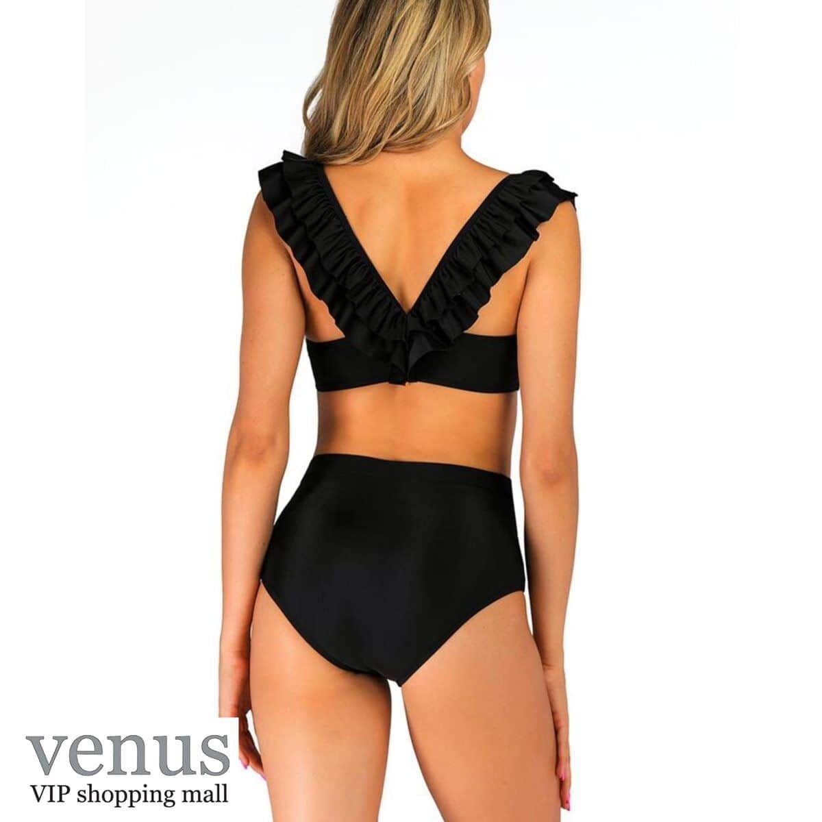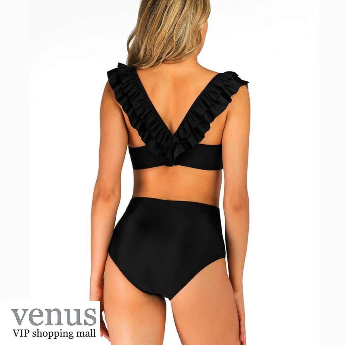 9061 - בגד ים בקיני גזרה גבוהה כתפיות מלמלה שחור