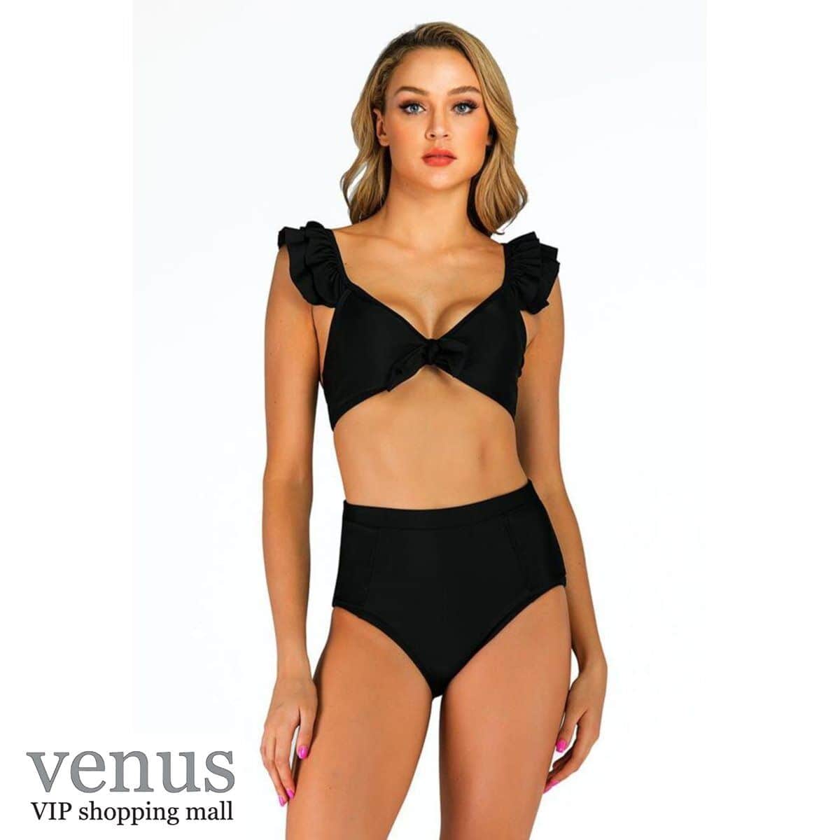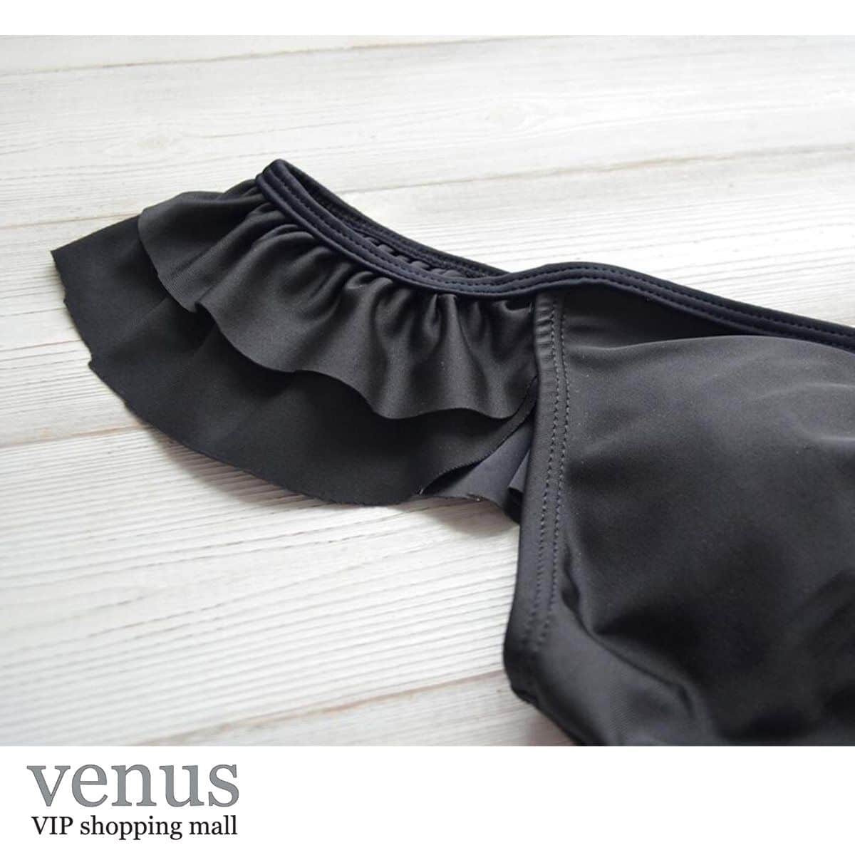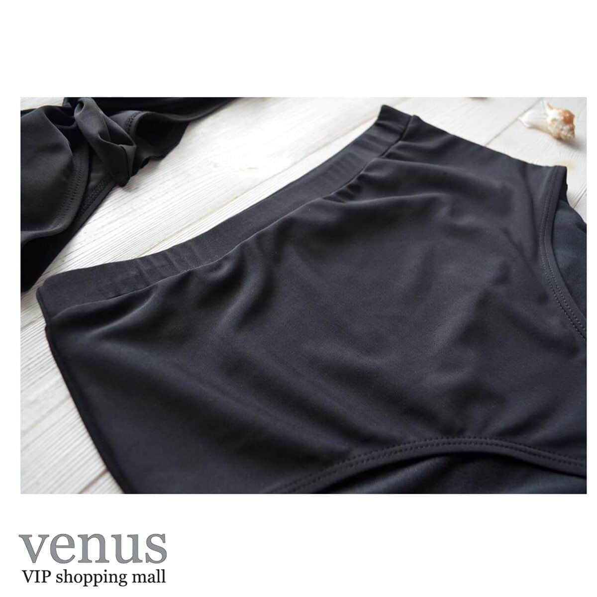 9061 - בגד ים בקיני גזרה גבוהה כתפיות מלמלה שחור