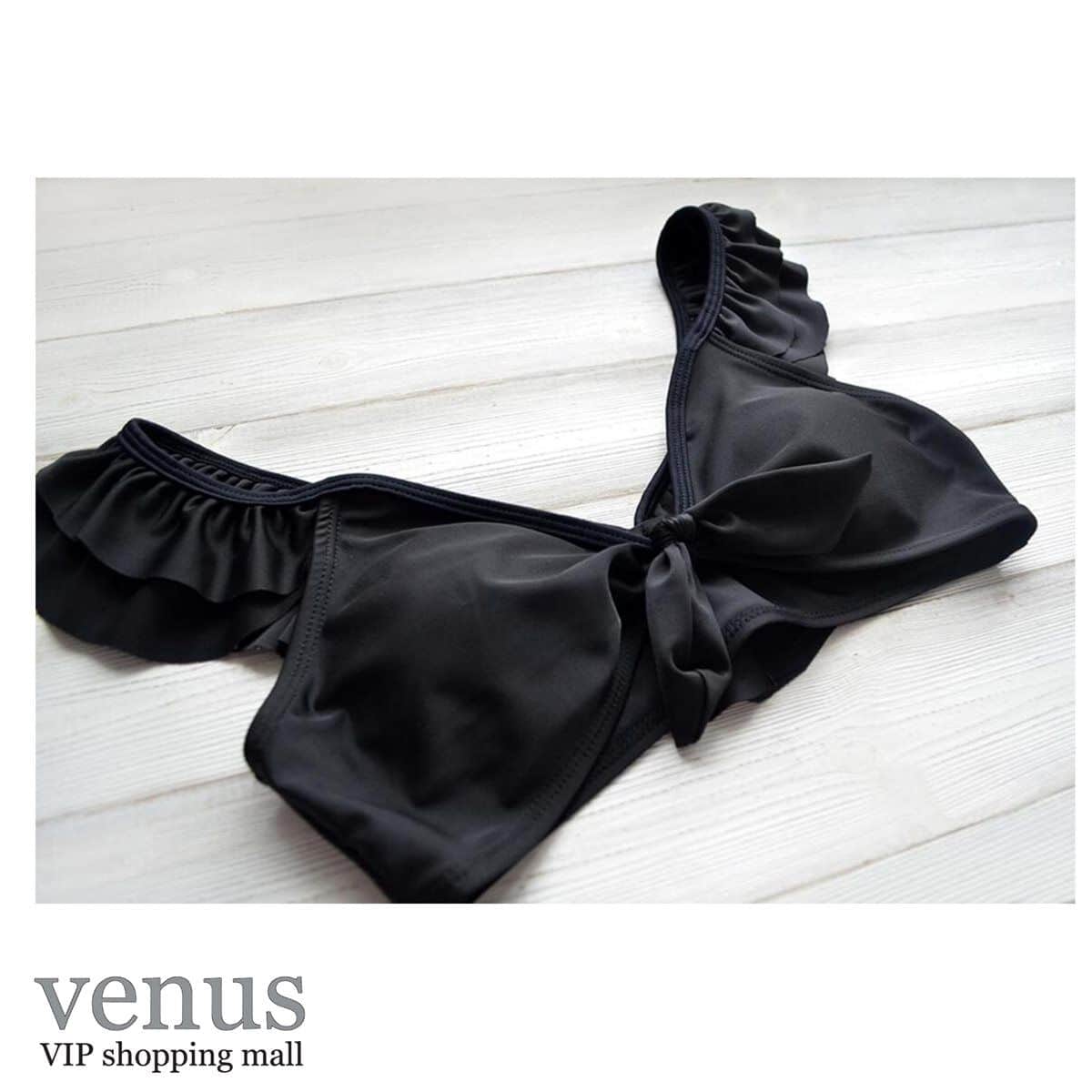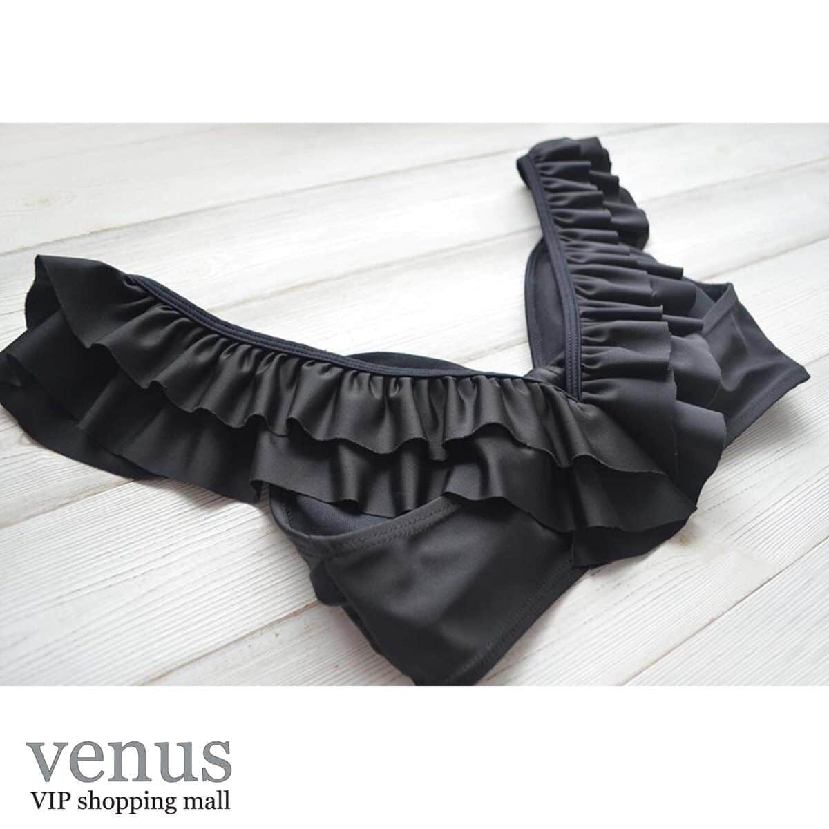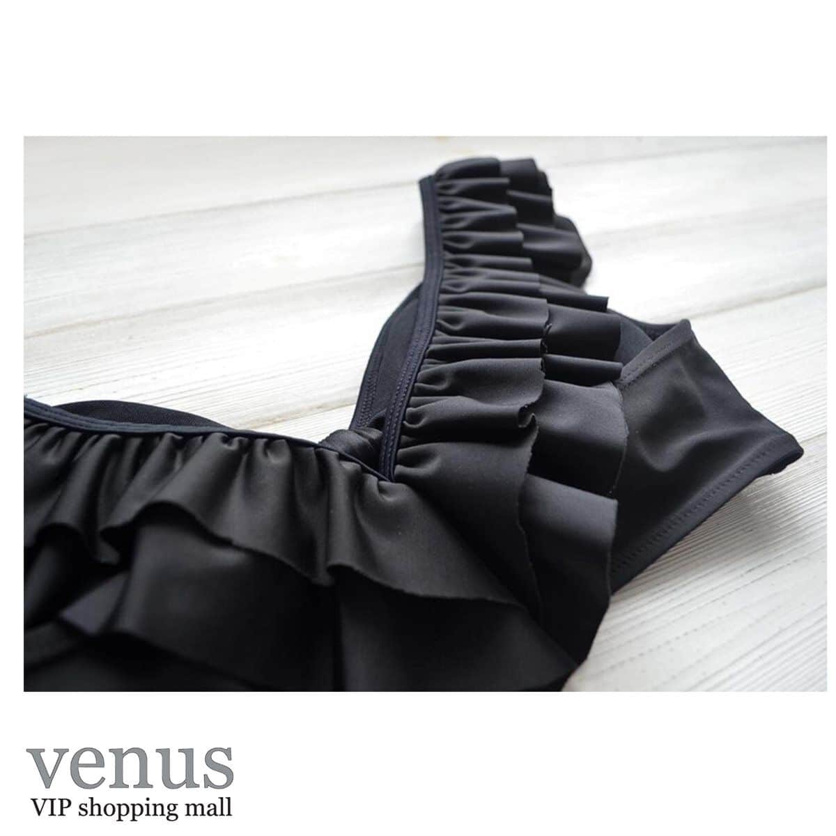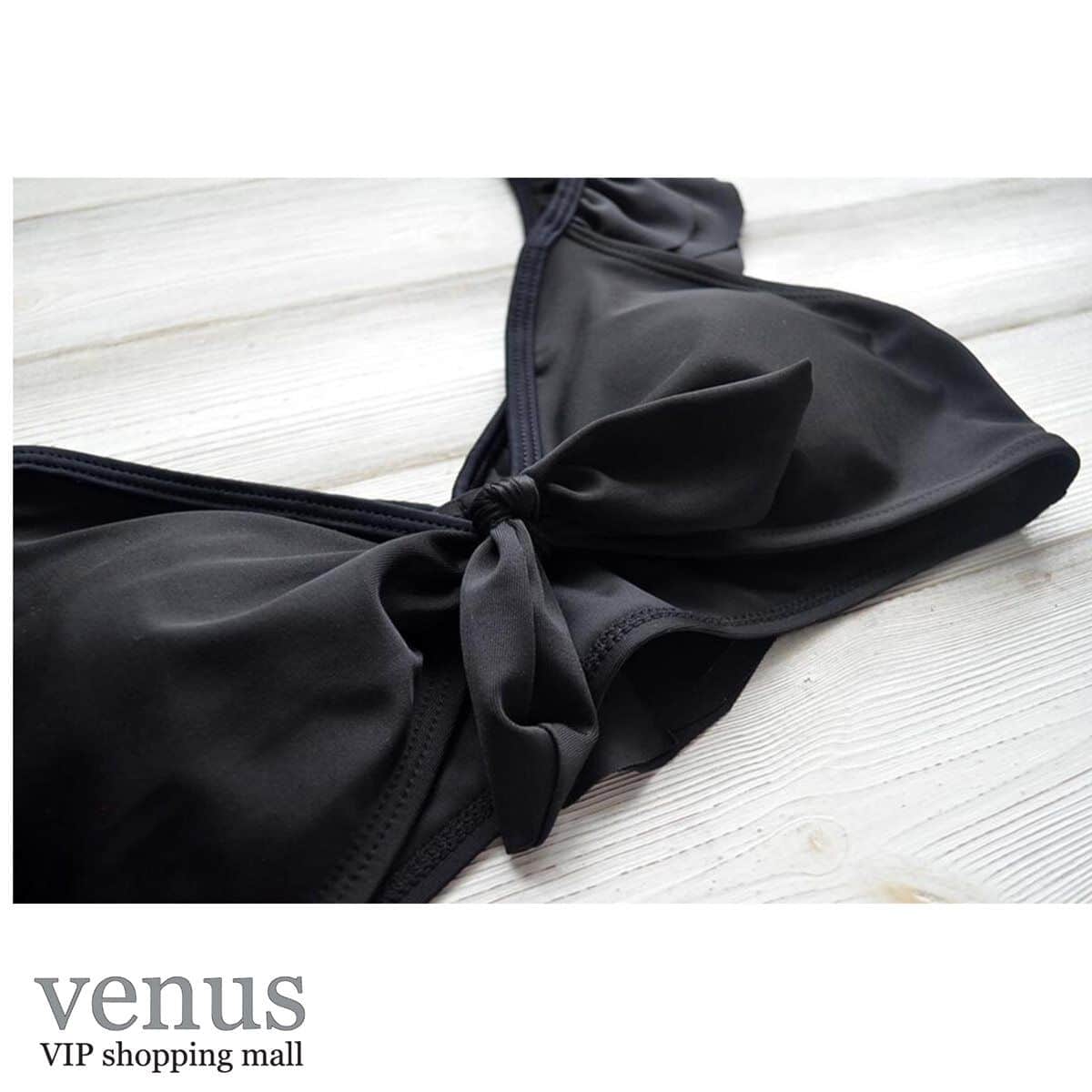 9061 - בגד ים בקיני גזרה גבוהה כתפיות מלמלה שחור