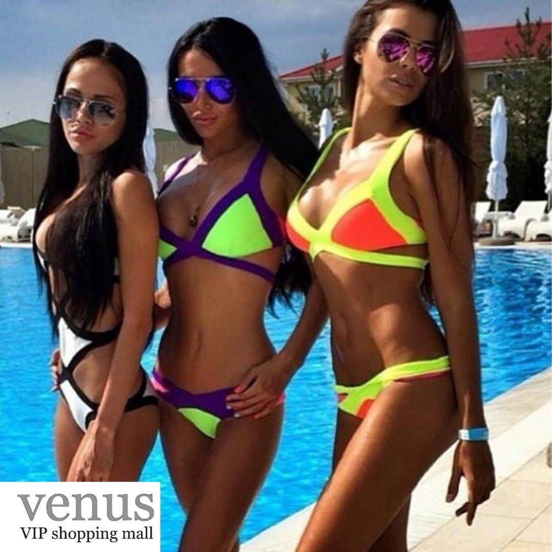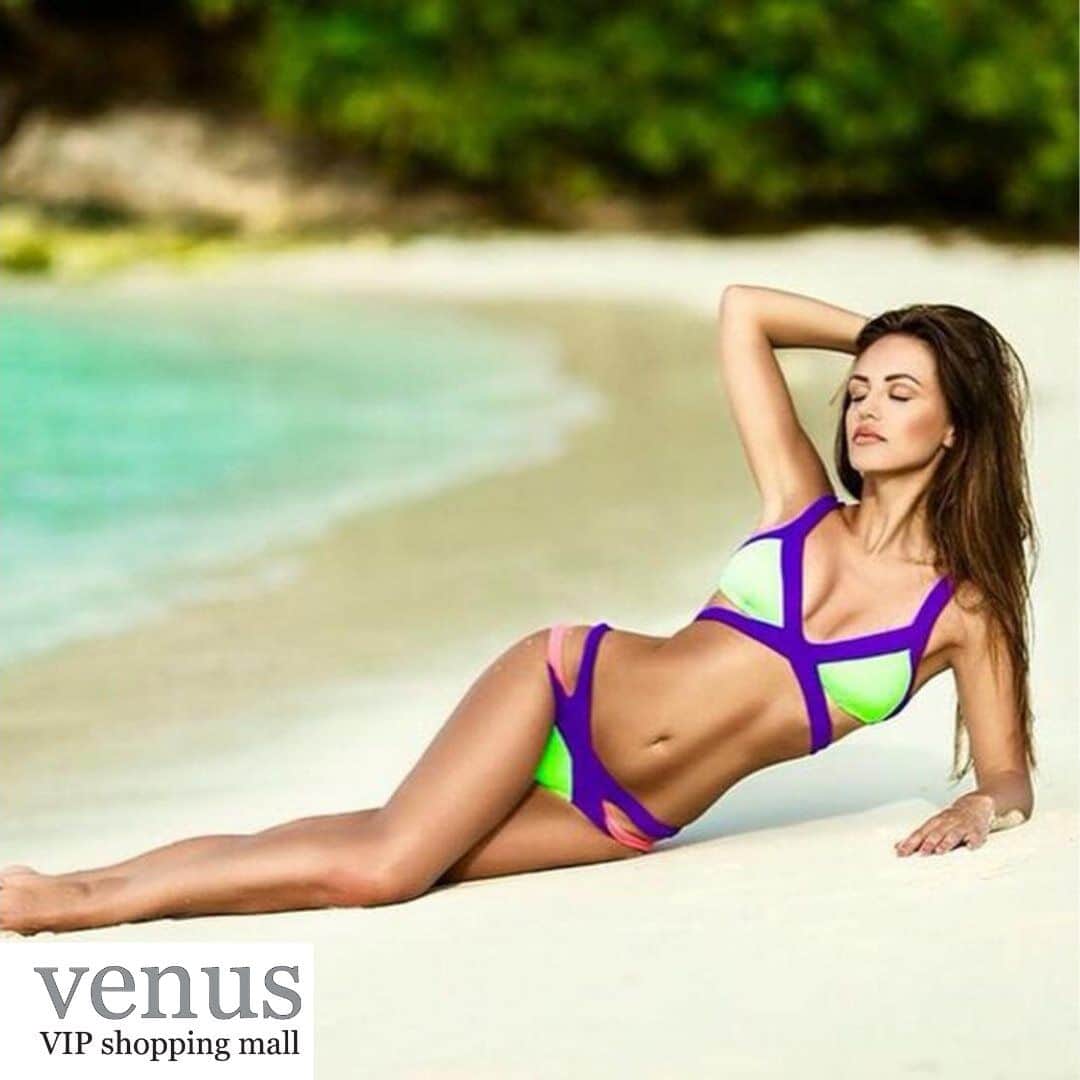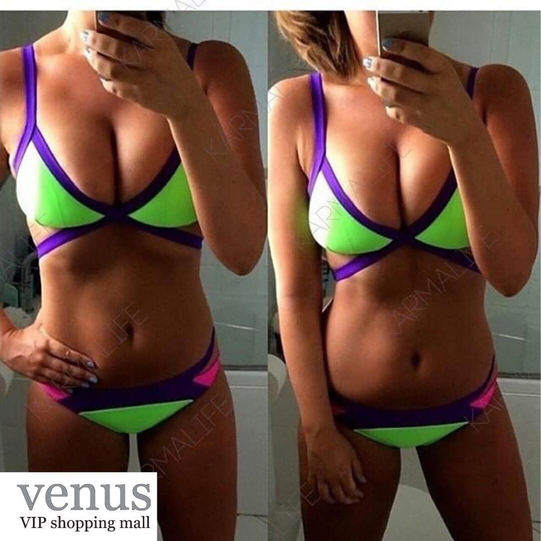 8693 - בגד ים בקיני זרחני סגול-טורקיז-ורוד