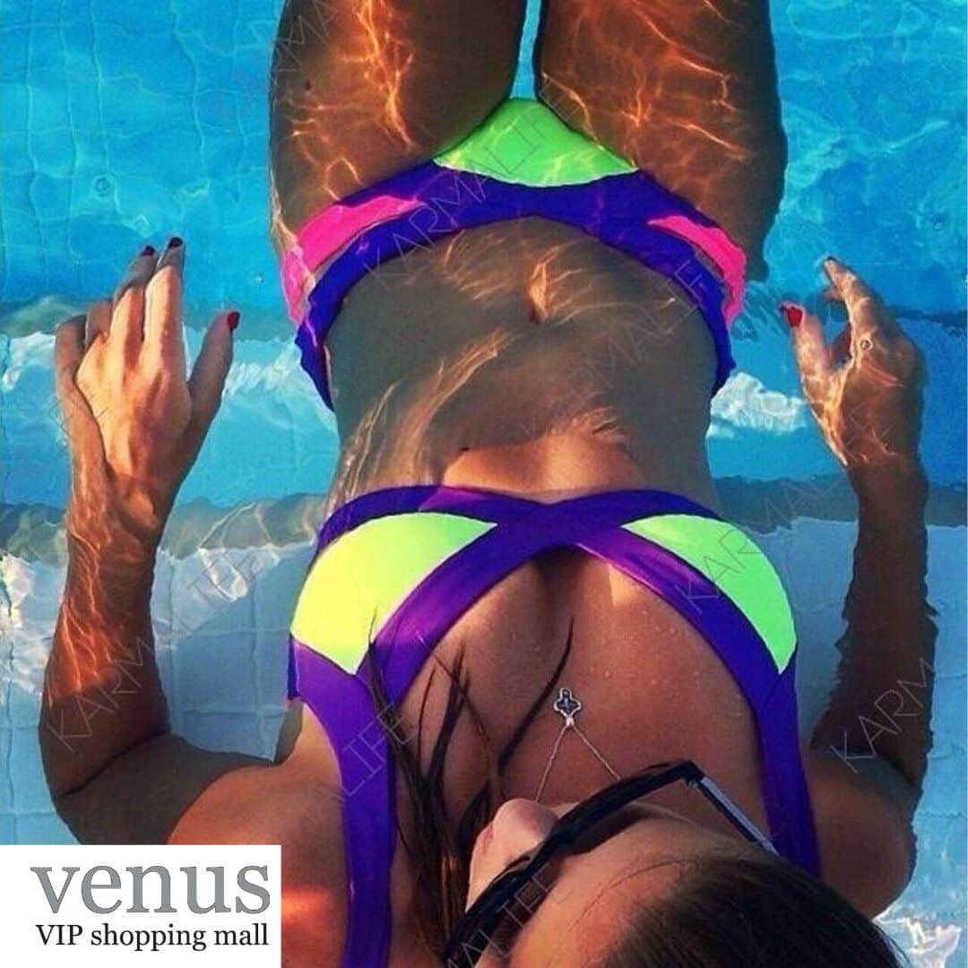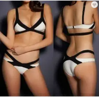 8693 - בגד ים בקיני זרחני שחור-לבן