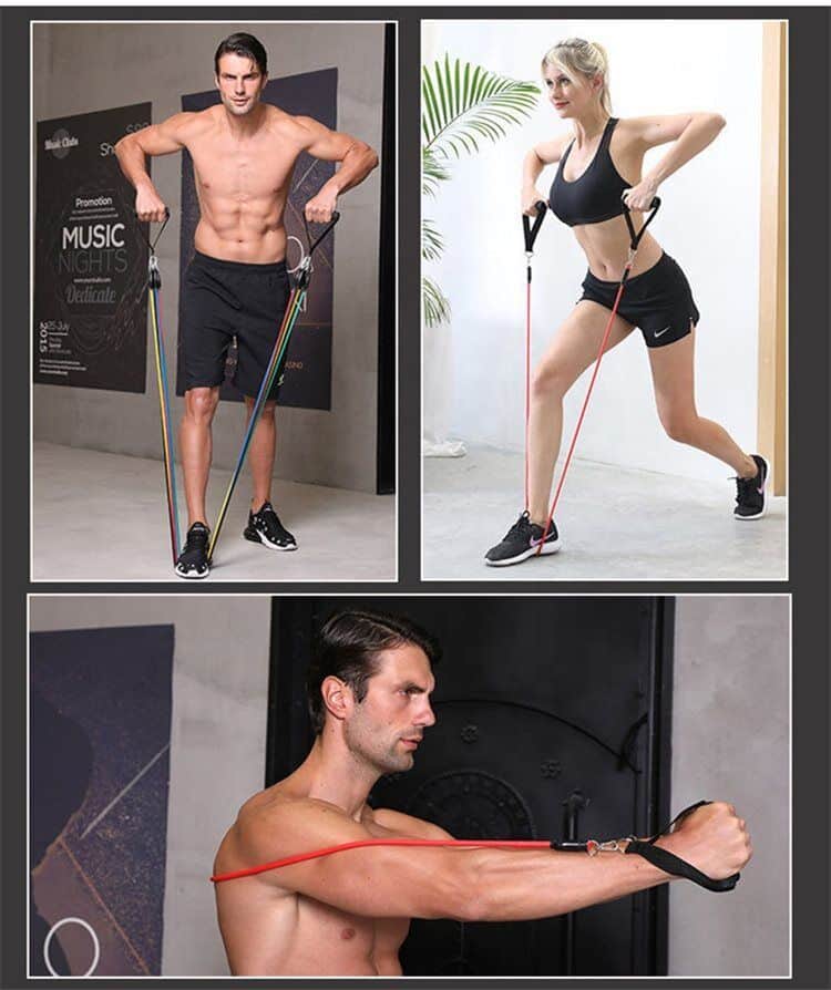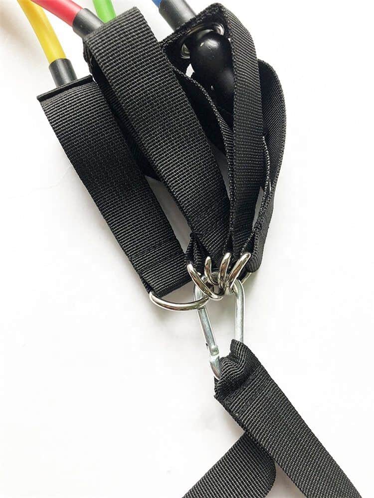 סט גומיות כושר לרגליים (כולל גומיות התנגדות עם ידיות) לאימון כוח לביצוע מגוון רחב של תרגילים לפלג גוף עליון ורגליים.