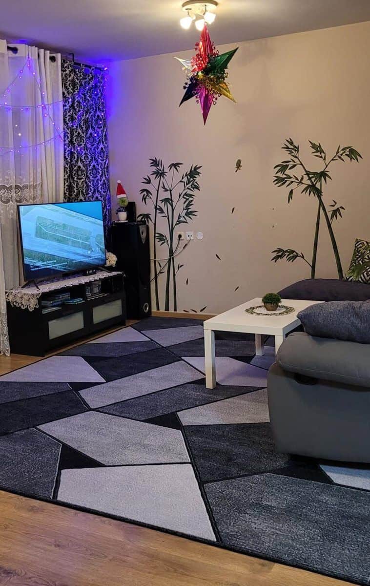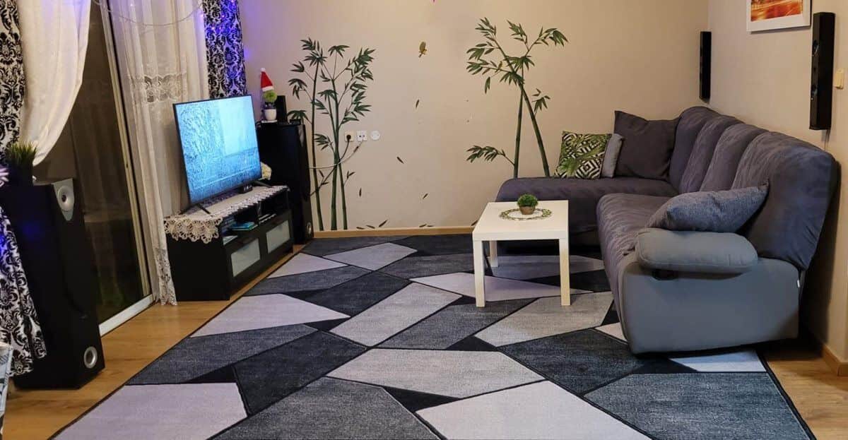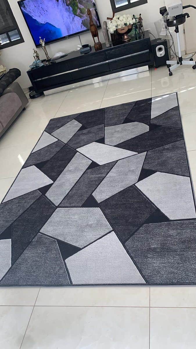 שטיח לסלון גאומטרי אפור, שחור, אפור - בהיר