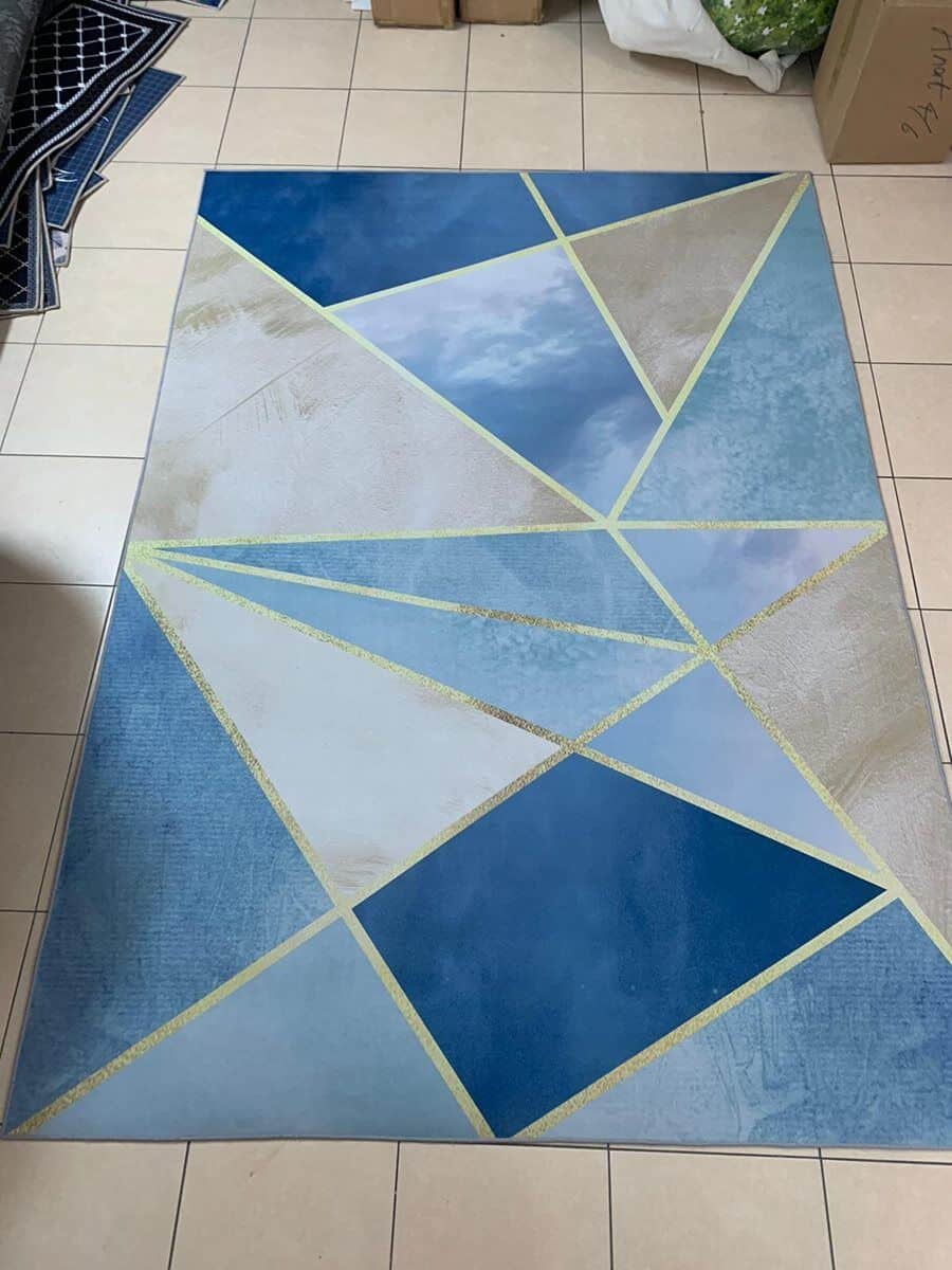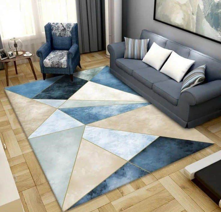 שטיח לסלון גאומטרי בז'-תכלת-כחול