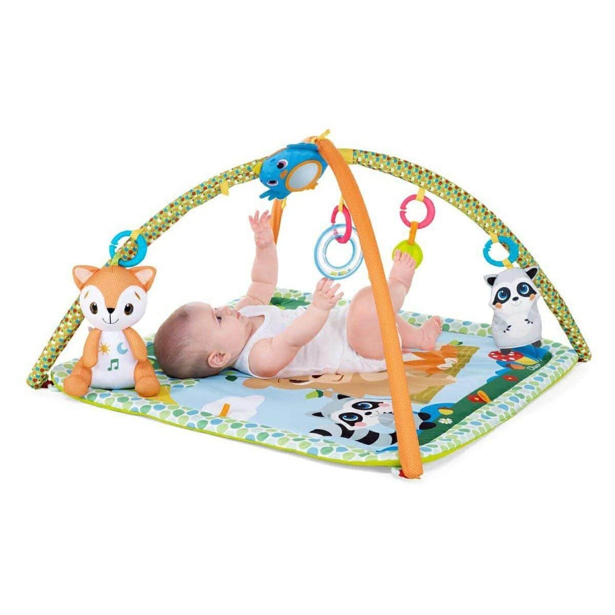 משטח פעילות יער קסום, מרופד עם קשתות וצעצועים תלויים ומוזיקה מרגיעה המעניק שעות של הנאה והתפתחות עבור ילדך