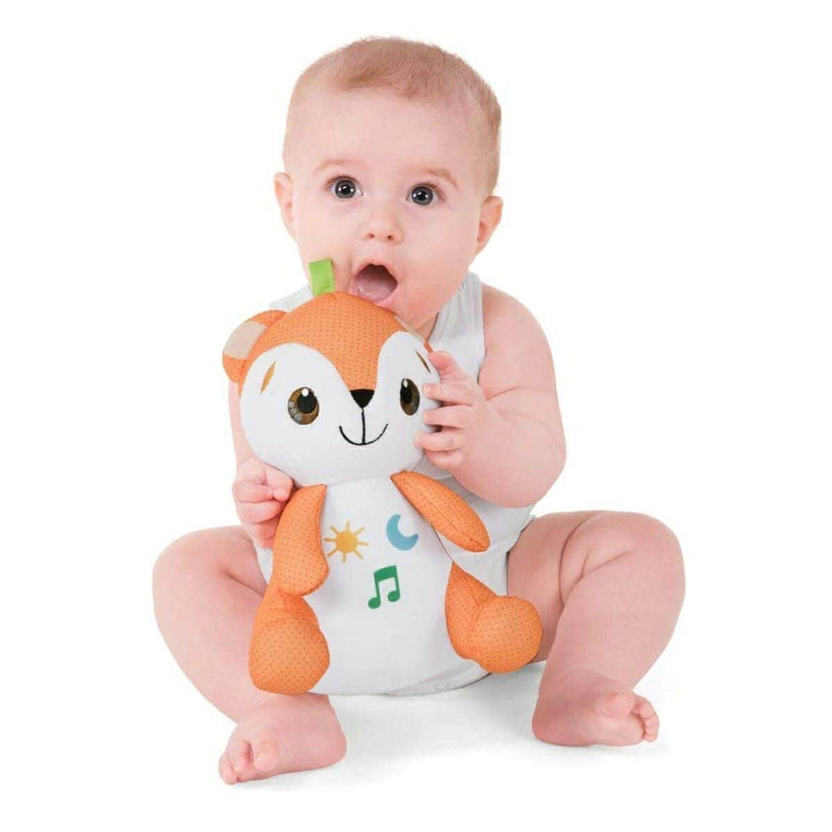 - כולל שועל צעצוע אלקטרוני מקטיפה המלווה את התינוק בזמן המשחק ורגעי ההרפיה
