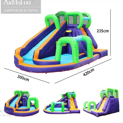 טירה ומגלשה מתנפחת כולל קיר טיפוס וגשר