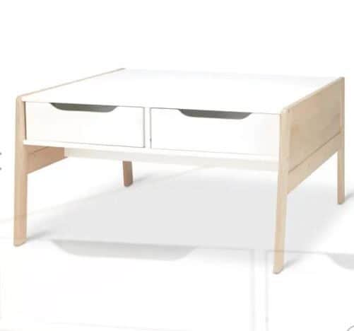 שולחן יצירה עשוי עץ עם שתי מגירות קטנות המותאם לאמנים פעלתנים.