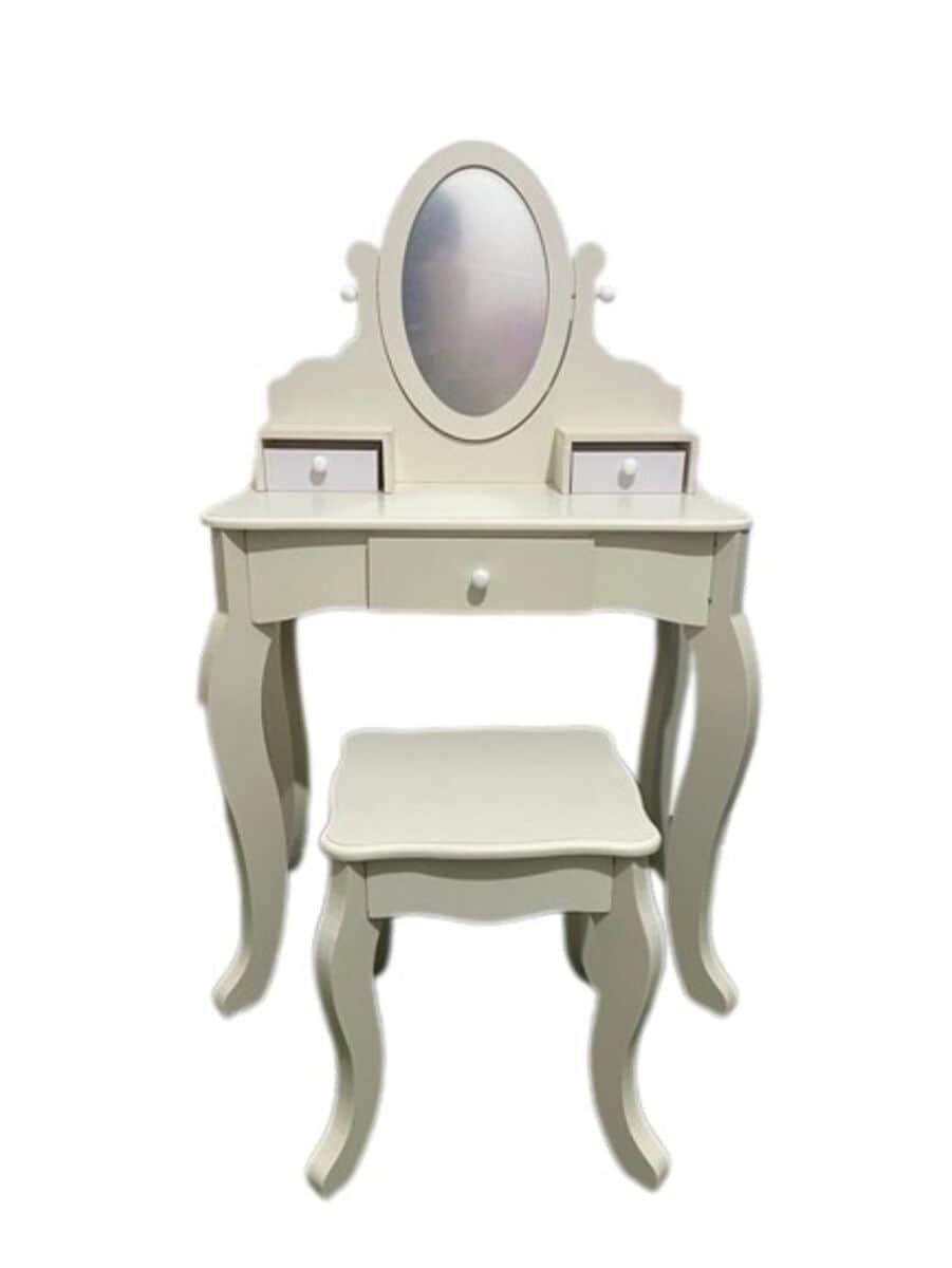שידת איפור לילדים דגם סיגל לגיל 4-9 שמנת כולל שרפרף, מראה ושני ומגירות אחסון מפלסטיק